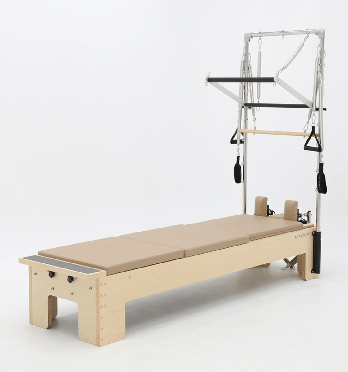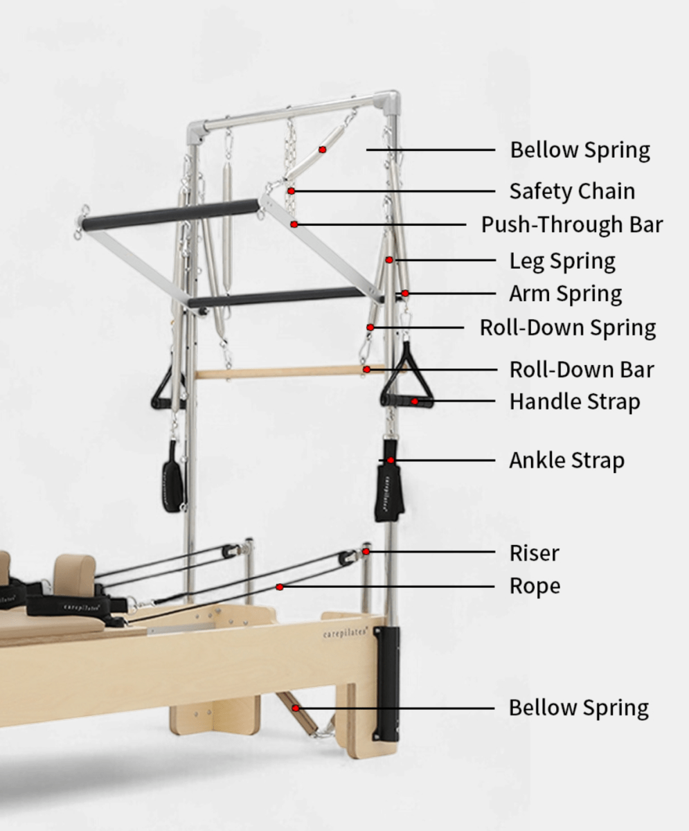 垂直リフォーマーは、従来のピラティスリフォーマーとキャデラックの機能を統合しており、幅広い種類のエクササイズを可能にします。